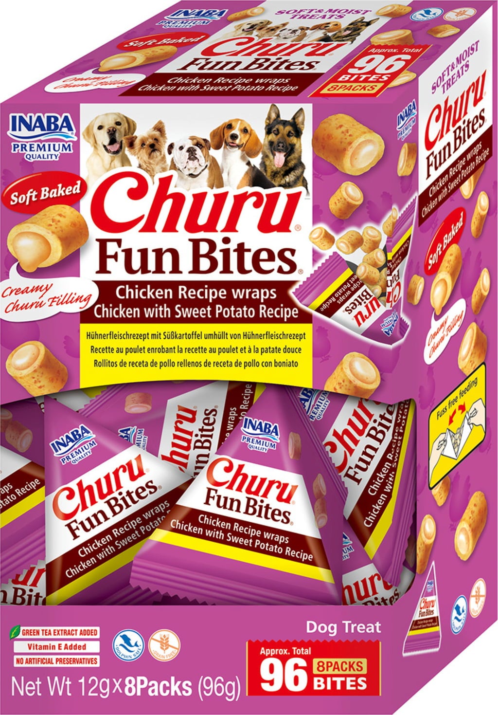 Churu Dog Fun Bites 8 x 12g, Hühnchen Wraps mit Süßkartoffel (96 g)