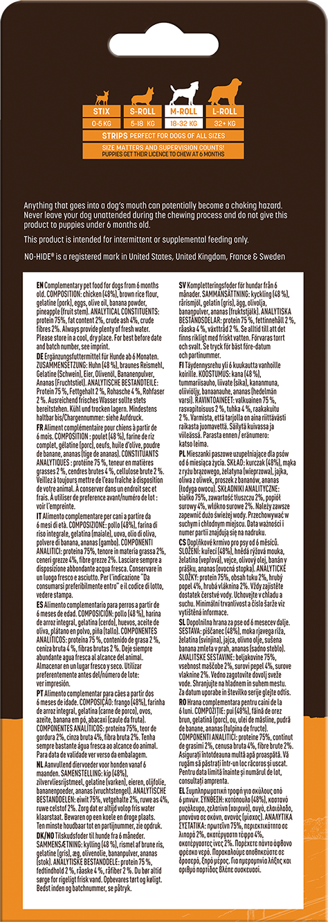 Der No-Hide™ Kausnack Huhn ist eine innovative und sichere Alternative zu traditionellen Kausnacks aus Rohhaut. Dieses Produkt wurde speziell entwickelt, um deinem Hund ein langanhaltendes und schmackhaftes Kauvergnügen zu bieten, ohne das mit herkömmlicher Rohhaut verbundene Risiko des Splitterns.